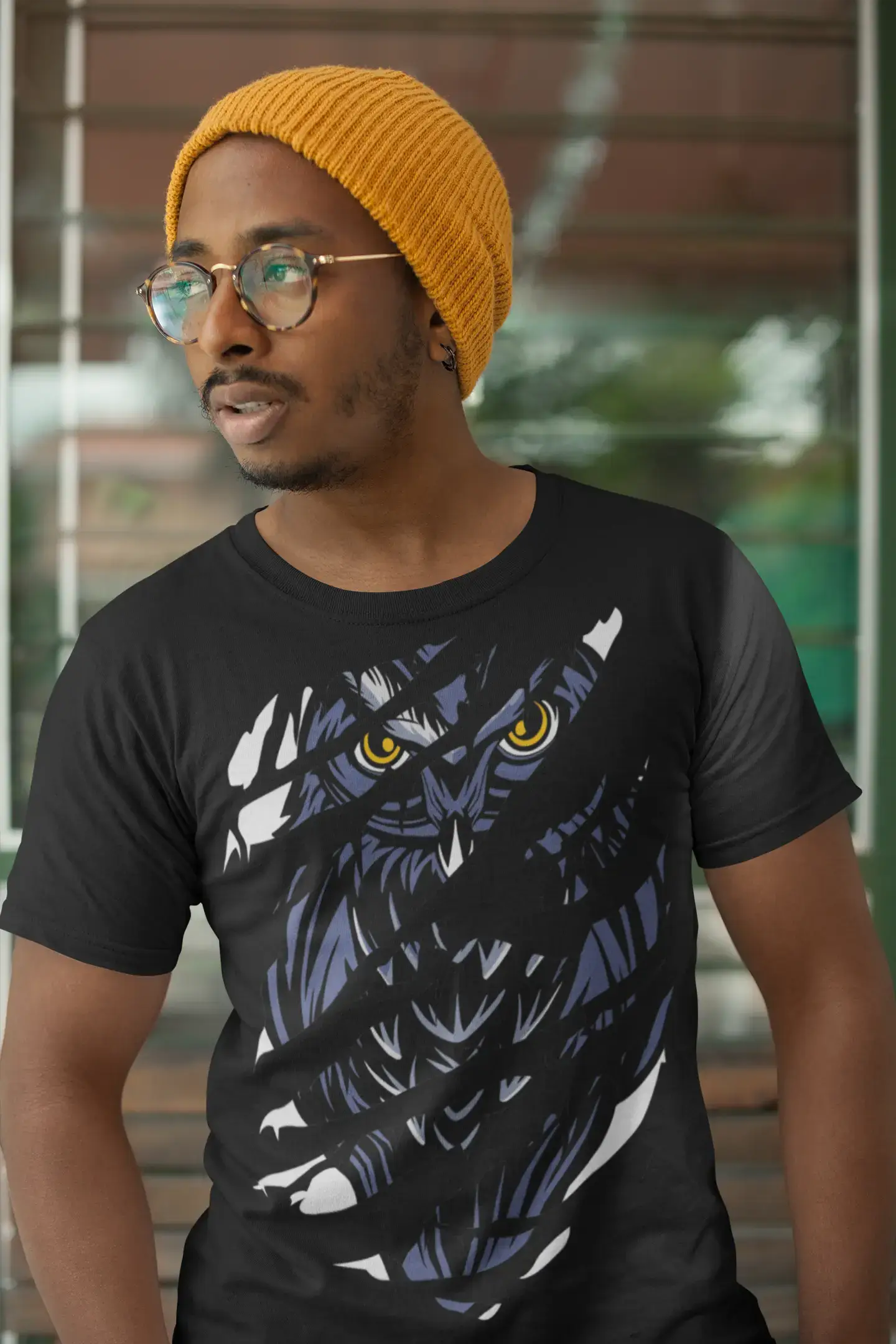 ULTRABASIC Men's Torn T-Shirt Owl - Night Bird Vintage Shirt for Men