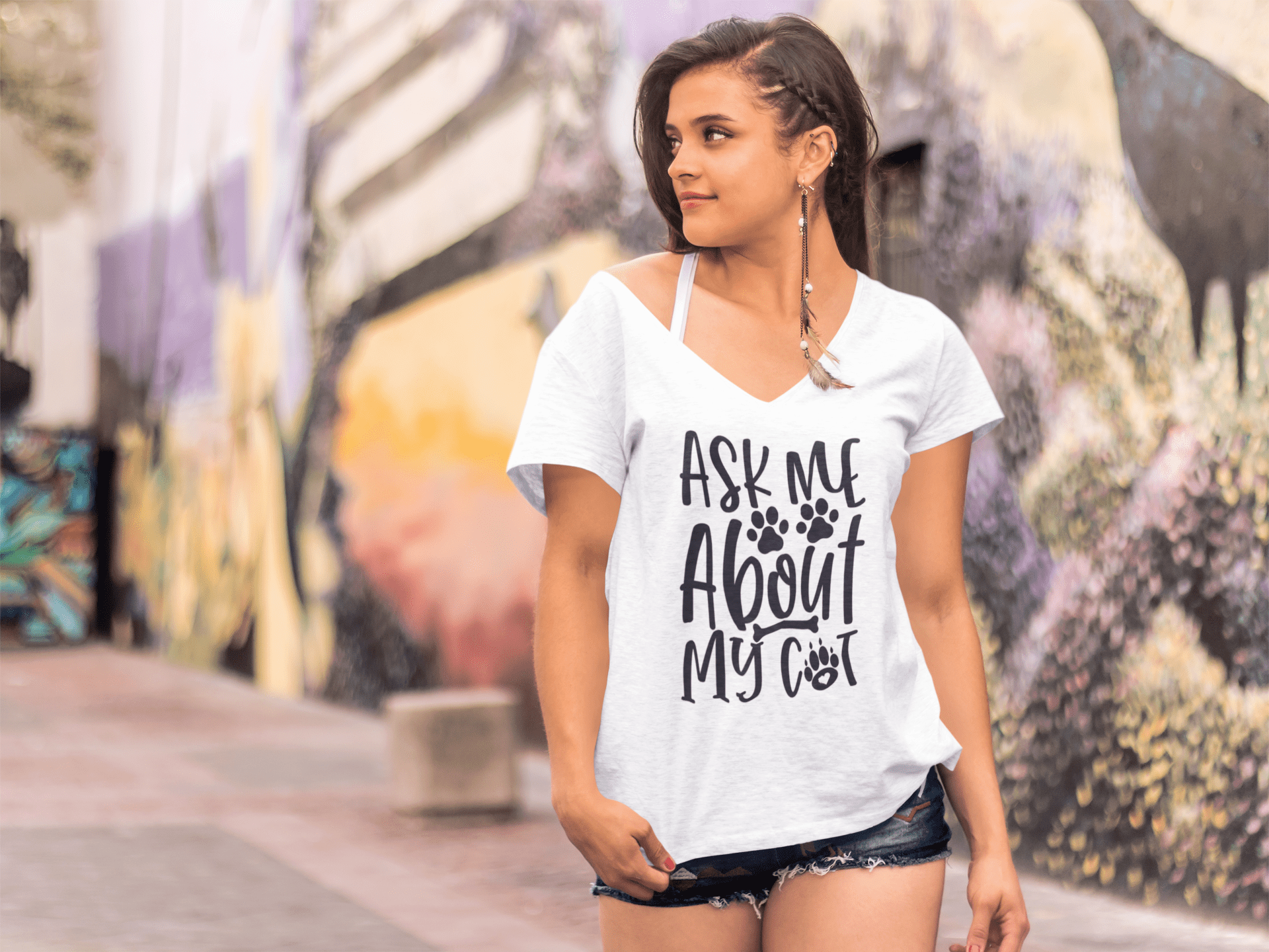 ULTRABASIC Women's T-Shirt Ask Me About My Cat - Short Sleeve Tee Shirt Tops